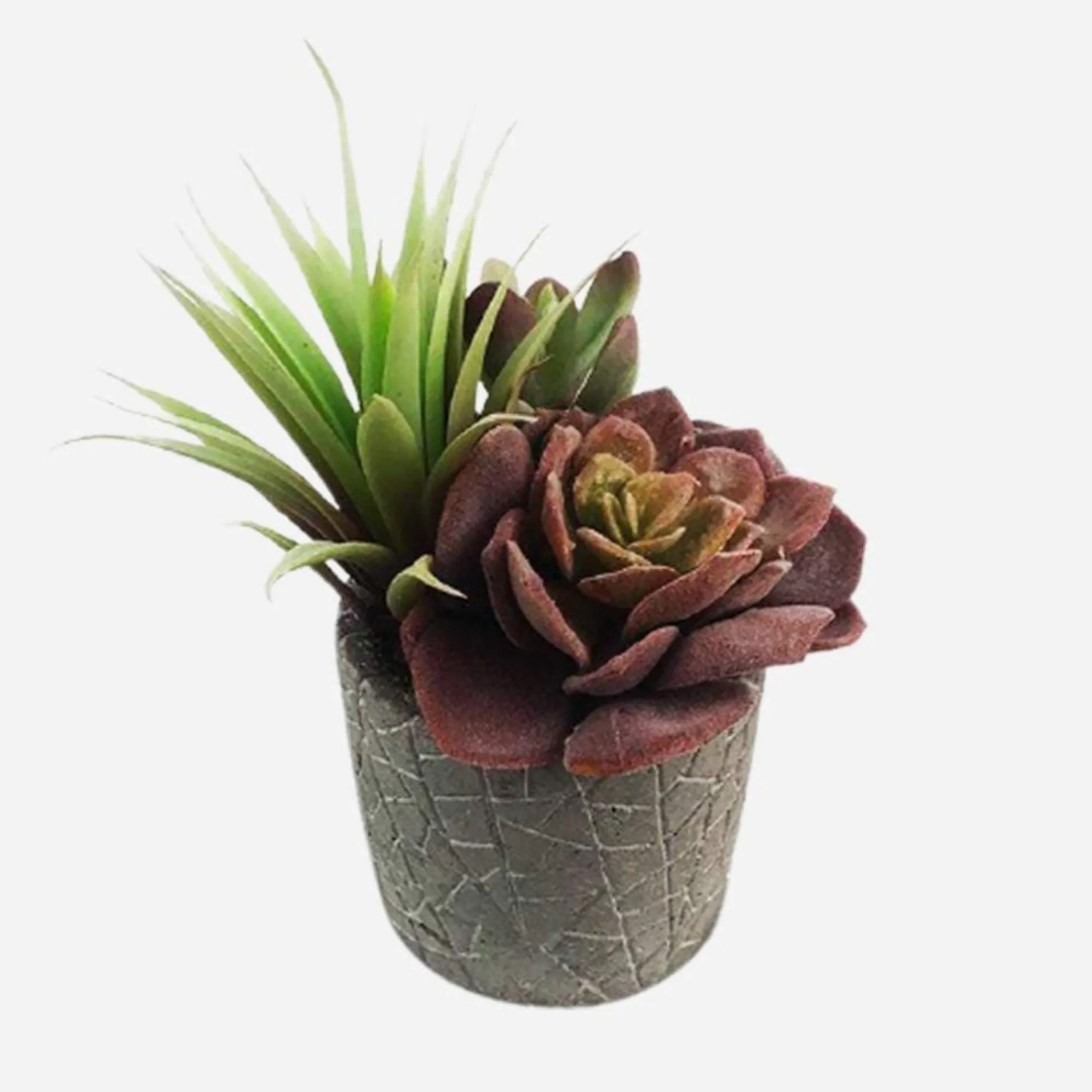 - Ceramic Pot With Durable Polymer Plants In Shades Of Green And Purple