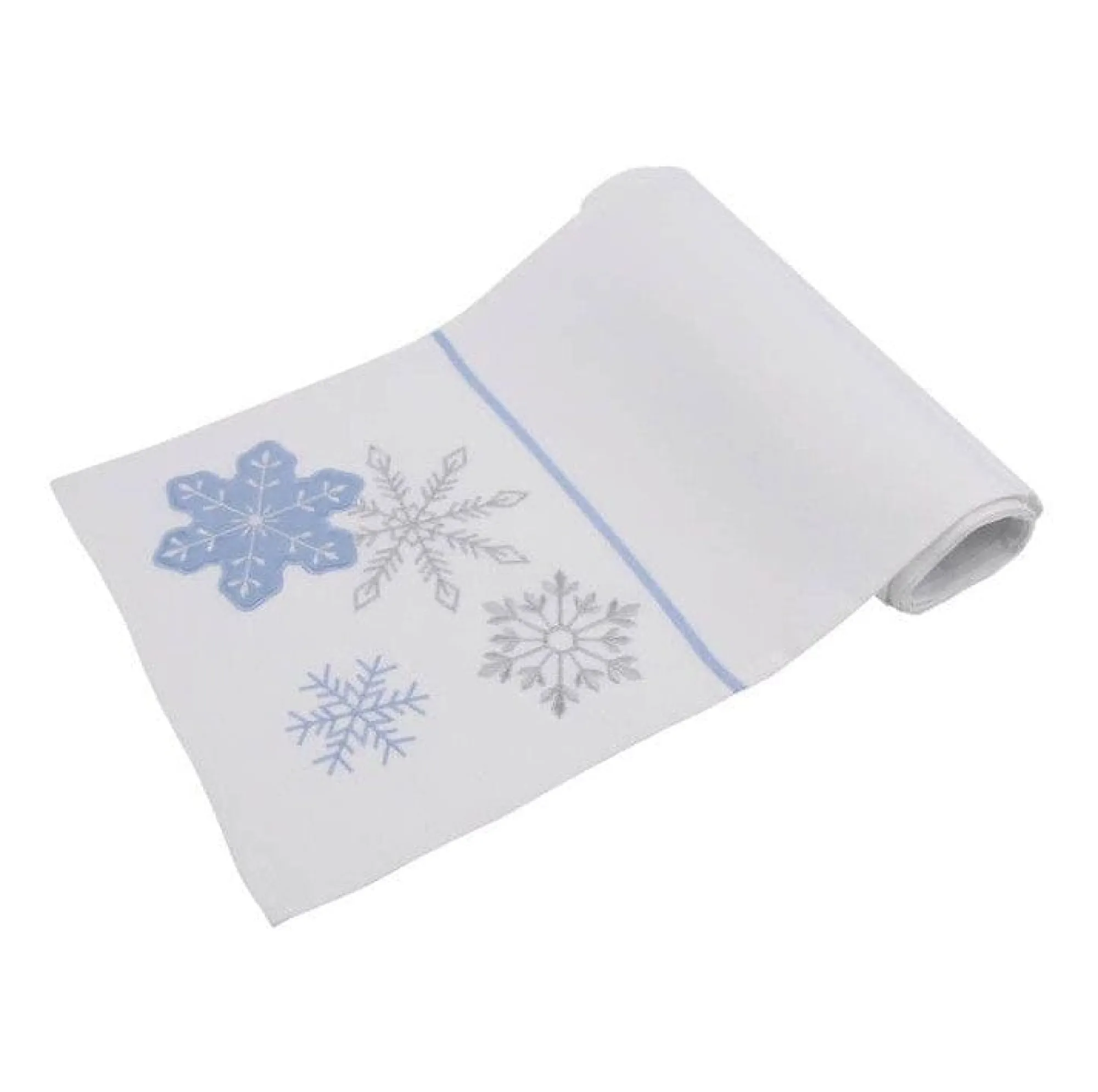 Accentuate Hall, Dining And Coffee Tables With The Embroidered Table Runner With Blue And Silver Snowflakes, Creating A Winter Wonderland This Christmas.
