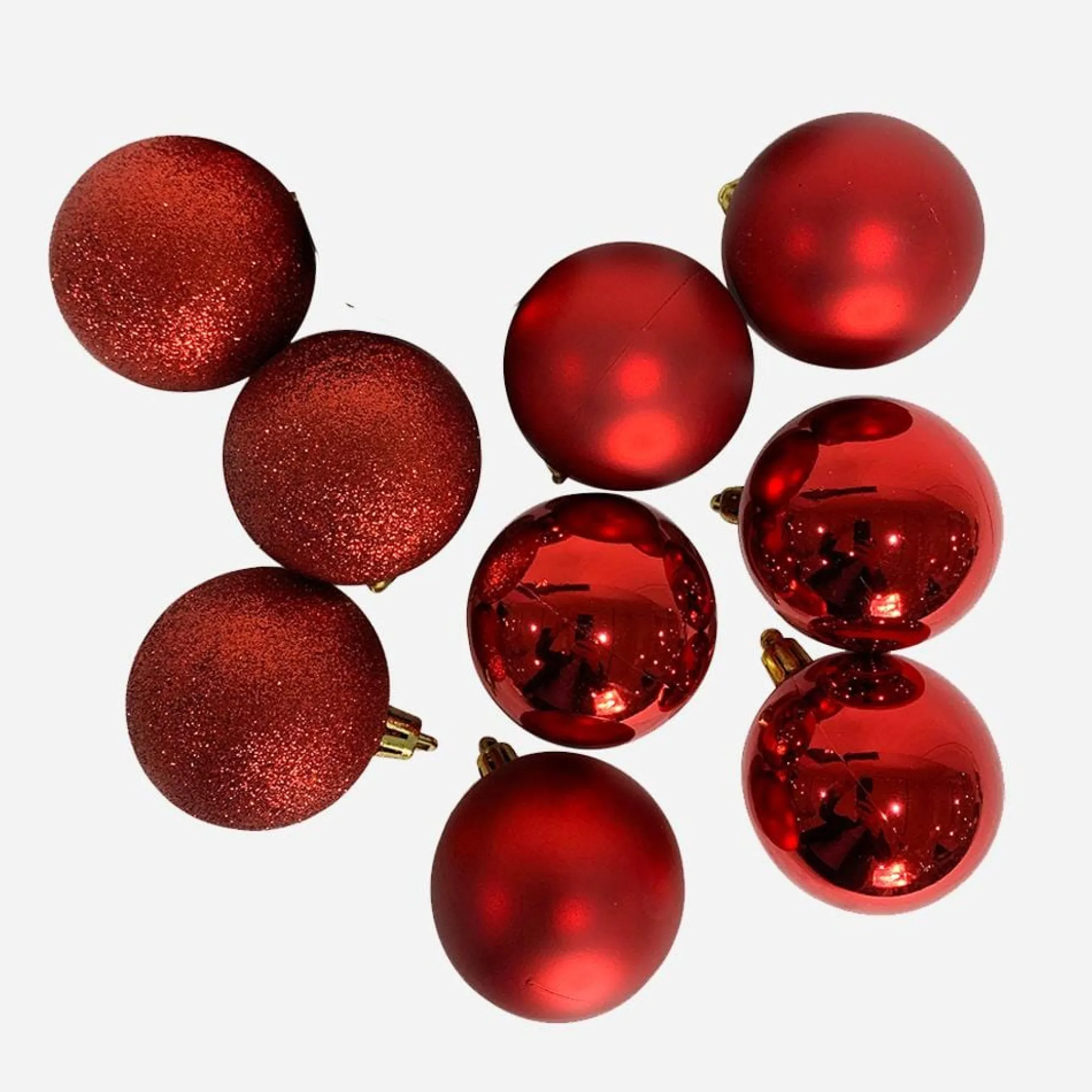 - Red Matte, Metallic And Glitter Finish Baubles